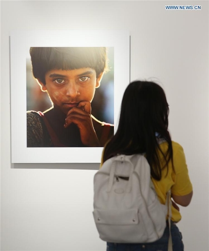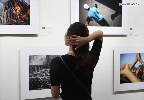 A visitor look at works from Xinhua News Agency during the China International Photographic Art Festival (CIPAF) held in Zhengzhou, capital of central China's Henan Province, May 26, 2016. 738 outstanding works selected from 110 thousand works from 88 countries and regions were displayed during the art festival, which will last for 8 days from May 26 to June 2. (Xinhua/Cai Yang)