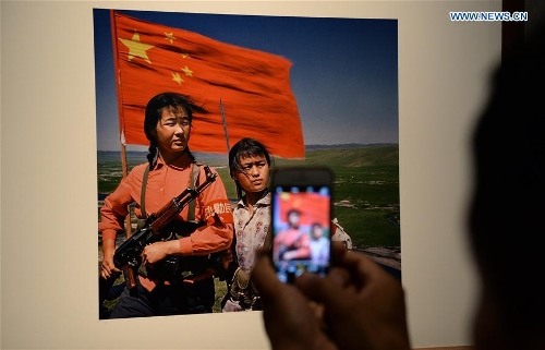 A visitor takes photos of a work duirng the China International Photographic Art Festival (CIPAF) held in Zhengzhou, capital of central China's Henan Province, May 26, 2016. 738 outstanding works selected from 110 thousand works from 88 countries and regions were displayed during the art festival, which will last for 8 days from May 26 to June 2. (Xinhua/Cai Yang)