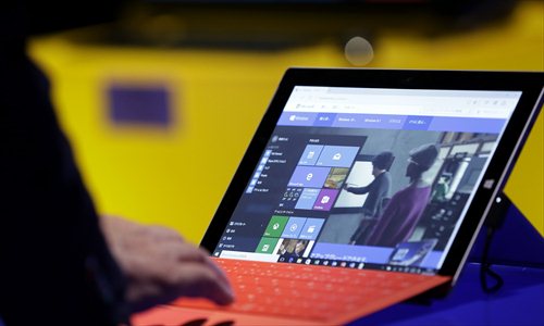 A visitor tries out Microsoft Windows 10 operating system during a launch event in Tokyo, Japan on July 29, 2015. Photo: CFP