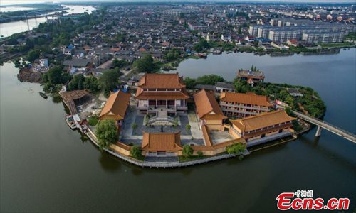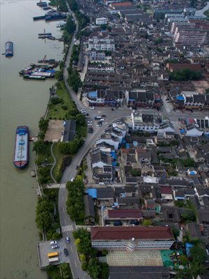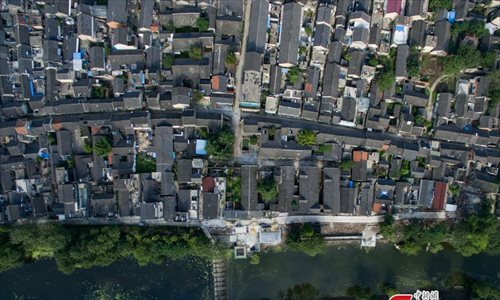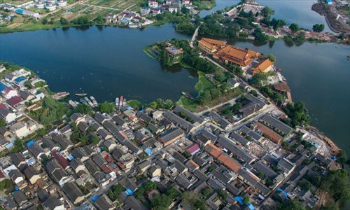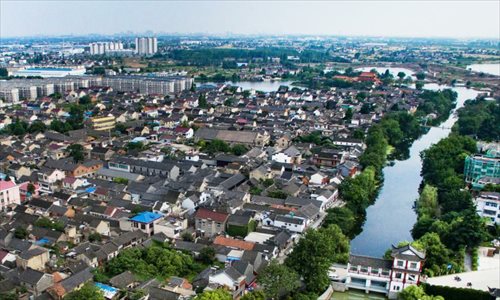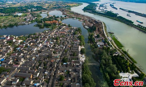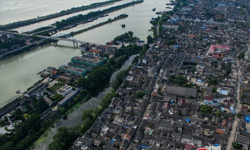 An aerial view of Shaobo Town in Yangzhou City, East China’s Jiangsu Province, June 1, 2016. With a history stretching back more than 1,600 years, the town was once an important business hub on China's Grand Canal, the longest artificial waterway in the world at the time, which was placed on the UNESCO World Heritage list in 2014. (Photo: China News Service/Yang Bo)