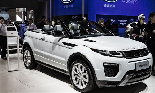 A Range Rover Evoque convertible sport utility vehicle on display at the Beijing International Automotive Exhibition on April 26 Photo: CFP
