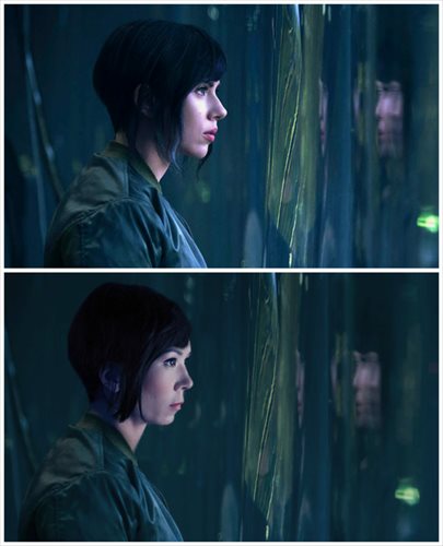 Scarlett Johansson in Ghost in the Shell (top) and Villemaire.