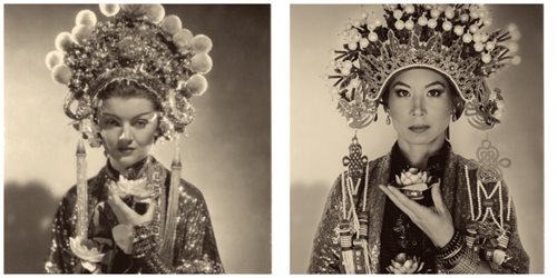 Myrna Loy in a Chinese opera costume (left) and Villemaire.