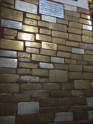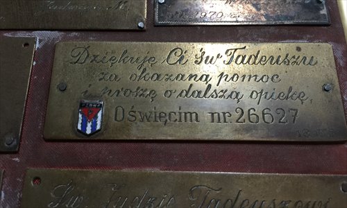 Plaques on the wall of the Church of the Holy Cross. They were hung by survivors of the infamous Auschwitz concentration camp, a network of German Nazi concentration and extermination camps built during World War II. The number on the plaques indicates the prisoner number given to the survivors during their time in the camps. Photo: Song Shengxia/GT