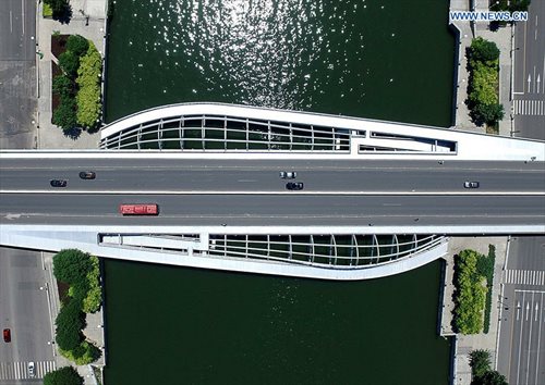 Photo taken on June 24, 2016 shows Daguangming Bridge over Haihe River in Tianjin, north China. China's northern port city of Tianjin is getting ready for the Annual Meeting of the New Champions 2016, also known as the Summer Davos Forum, between June 26 and 28. (Xinhua/Yue Yuewei)