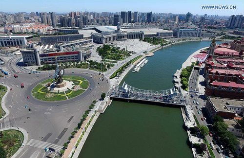 Photo taken on June 24, 2016 shows Jiefang Bridge over Haihe River in Tianjin, north China. China's northern port city of Tianjin is getting ready for the Annual Meeting of the New Champions 2016, also known as the Summer Davos Forum, between June 26 and 28. (Xinhua/Yue Yuewei)