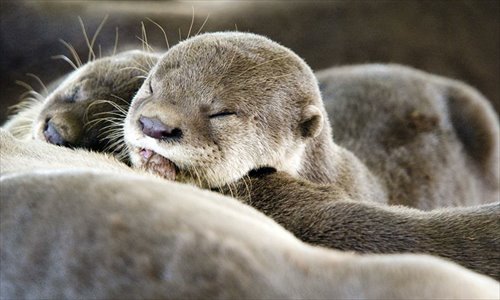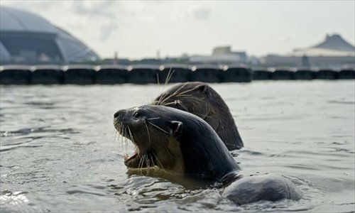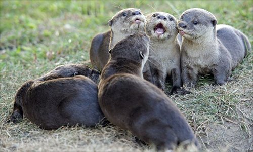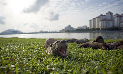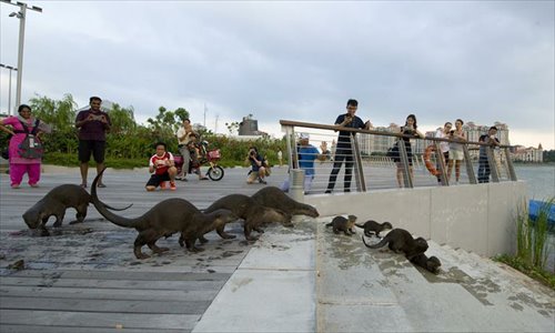Photo taken on July 1, 2016 shows members of a wild otter family called "Bishan10" in Singapore's Kallang Basin area. The size of this wild otter family has enlarged from only two otters spotted for the first time in Singapore's central area Bishan Park in 2014 to ten otters till now. As a result, Singapore's otter enthusiasts nicknamed them as "Bishan10". Within these 2 years, there is an increase in sightings of different otter families in many places of Singapore. The 13th International Otter Congress organised by International Union for Conservation of Nature (IUCN) will be held in Singapore for the first time from July 3 to 8.Photo:Xinhua