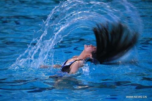 A woman amuses herself in a swimming pool in Suining City, southwest China's Sichuan Province, June 17, 2016. (Xinhua/Zhong Min)
