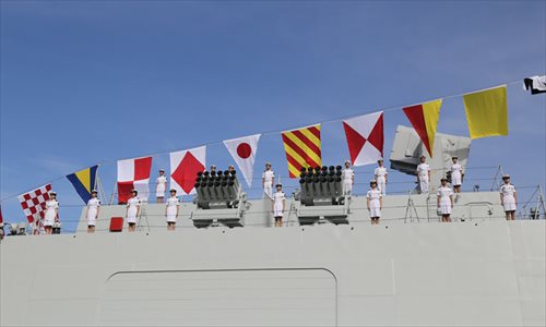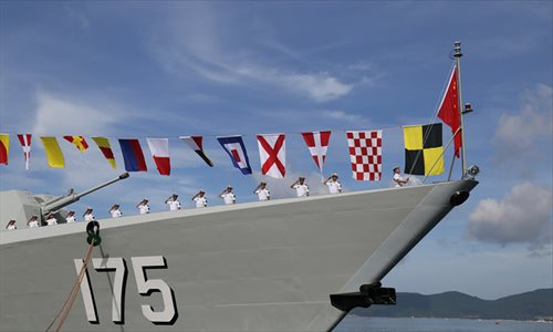 The picture shows the newly commissioned guided-missile destroyer Yinchuan.