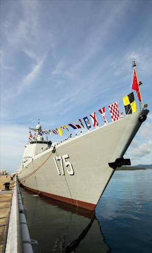 The picture shows the newly commissioned guided-missile destroyer Yinchuan.Photos: chinamil.com