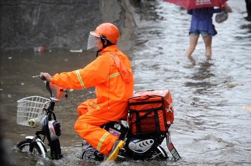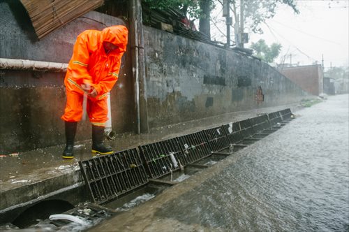 An orange alert, the second highest of China's four-tier warning system, was issued on Wednesday as heavy rain hit Beijing, disrupting the traffic and forcing flights to be canceled.