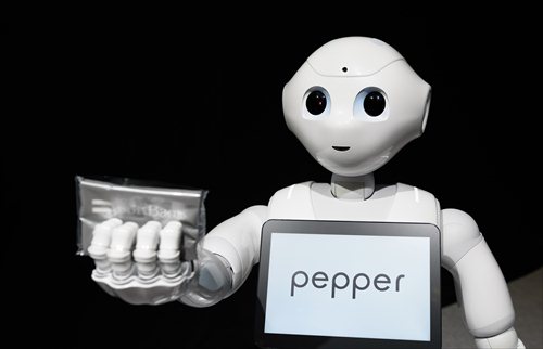 SoftBank Group Corp.'s humanoid robot Pepper is demonstrated at a news conference. Photo: CFP
