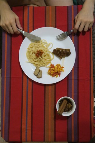 A Chinese diet usually pairs rice with vegetables and meat, and many Chinese people overseas, like Ren, use pasta as a substitute for rice. They even found that sometimes pasta proves to be better than the authentic Chinese noodles, since pasta does not get swollen, pasty or melt easily.