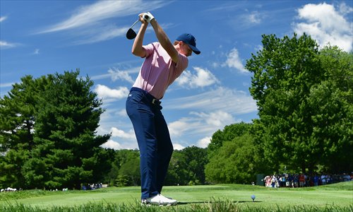 Jordan Spieth of the US hits a tee shot during a practice round prior to the 2016 PGA Championship at Baltusrol Golf Club on Tuesday in Springfield, New Jersey. Photo: CFP