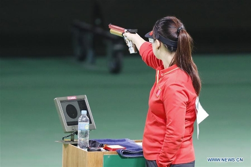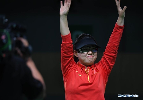 Team China final got the first gold at the Rio Olympics, thanks to 25-year-old Zhang Mengxue who claimed title of women's 10m air pistol title here on Sunday.