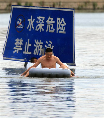 On a recent visit to these areas, the Global Times found about six to 10 people swimming in each place. Few had flotation or safety devices.