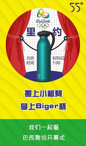 Rio Games-related insignia, however, is pervasive both online and offline. The 2016 Olympic emblem has also reportedly illustrated hot pot takeout ordering app Taotailang, promotional materials for tile manufacturer Monalisa Tiles, and posters for the as yet unreleased movie Suddenly Seventeen, which is directed by famous Chinese film director Zhang Yimou's daughter.