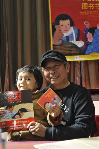 Zhu Chengliang with a young fan at a Shanghai children's book fair Photo: Tom Carter/GT
