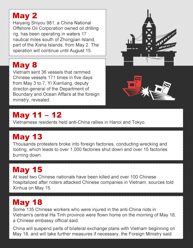 China suspends parts of bilateral exchange plans with VietnamOver 3,000 Chinese nationals evacuated from Vietnam after deadly violence