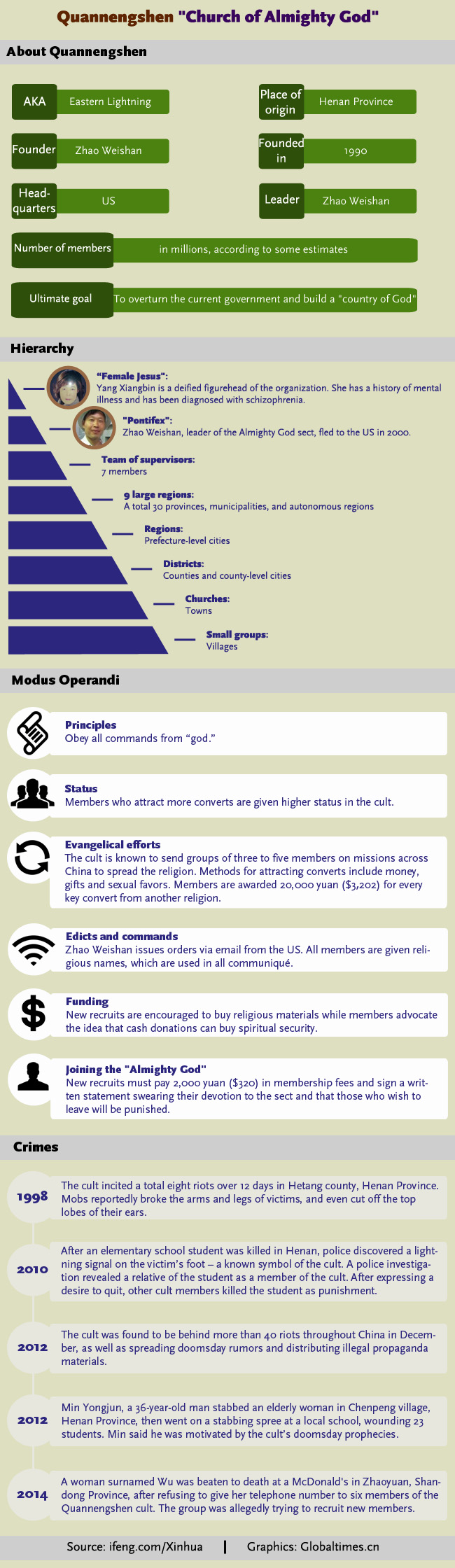 | In a nationwide campaign, more than 450 members throughout the country (400 in Qinghai Province alone), were detained for handing out leaflets containing doomsday prophecies and spreading rumors. |