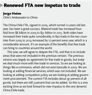 China on Saturday renewed its call for pushing forward the building of a Free Trade Area of the Asia-Pacific (FTAAP), as protectionism has dented global trade and economic globalization.