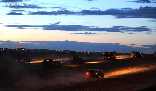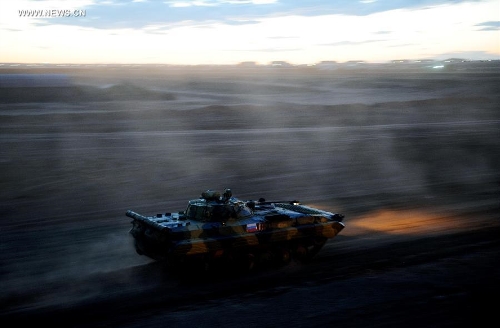 An infantry combat vehicle moves at the Zhurihe training base, North China's Inner Mongolia Autonomous Region, August 16, 2014. Photo: Xinhua