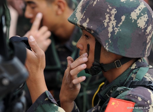 Soldiers from Tajikistan participate in the joint military exercise before the "Peace Mission-2014" in Zhurihe, North China's Inner Mongolia Autonomous Region, August 21, 2014. Photo: Xinhua
