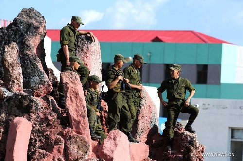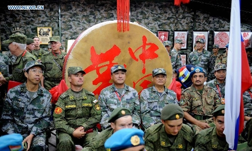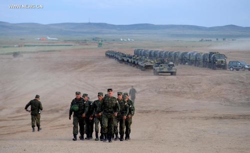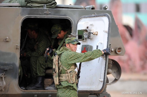 Soldiers from Russia participate in the joint military exercise before the "Peace Mission-2014" in Zhurihe, North China's Inner Mongolia Autonomous Region, August 19, 2014. Photo: Xinhua