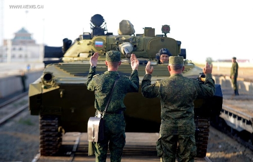 Russian soldiers arrive at the train station of the Zhurihe training base, North China's Inner Mongolia Autonomous Region, August 16, 2014. Photo: Xinhua