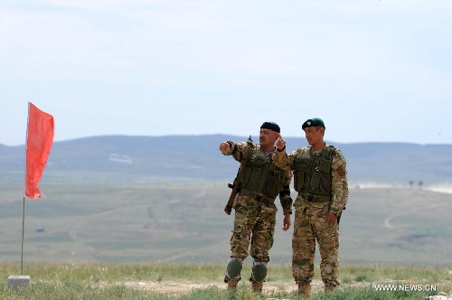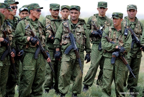 Soldiers from Tajikistan participate in the joint military exercise before the "Peace Mission-2014" in Zhurihe, North China's Inner Mongolia Autonomous Region, August 20, 2014. Photo: Xinhua