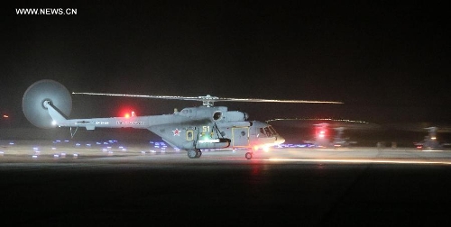 A Russian Mi-8 helicopter arrives at the Zhurihe training base, North China's Inner Mongolia Autonomous Region, August 17, 2014. Photo: Xinhua
