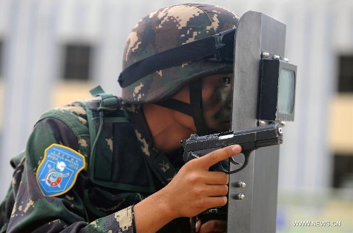 A People's Liberation army soldier participates in the joint military exercise before the "Peace Mission-2014" in Zhurihe, North China's Inner Mongolia Autonomous Region, August 20, 2014. Photo: Xinhua