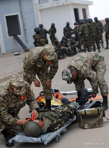 Chinese soldiers perform for foreign participants ahead of the Peace Mission-2014 anti-terror drill at the Zhurihe training base, North China's Inner Mongolia Autonomous Region, August 23, 2014. Photo: Xinhua