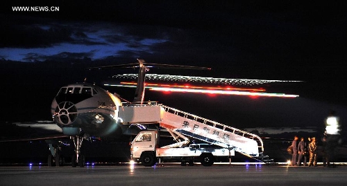 A Tu-134 carrying 39 people from Kazakhstan arrives at the airport of the Zhurihe training base, North China's Inner Mongolia Autonomous Region, August 17, 2014. Photo: Xinhua
