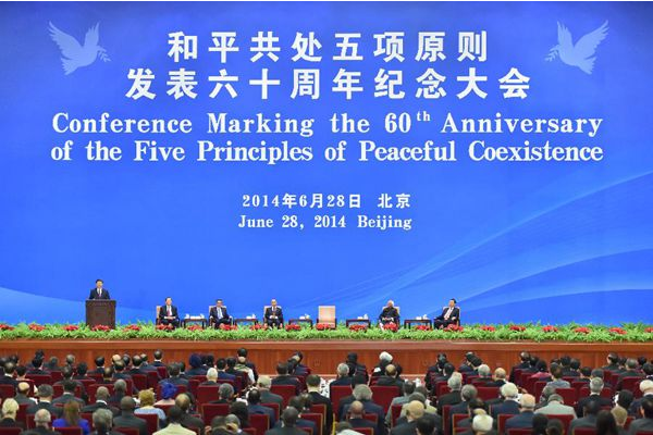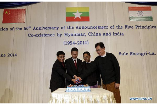 Chinese, Indian, Myanmar leaders mark 60-yr-old peace principlesChinese President Xi Jinping, Myanmar President U Thein Sein and Indian Vice President Mohammad Hamid Ansari gathered in Beijing on June 28 to mark the 60th anniversary of the Five Principles of Peaceful Coexistence.