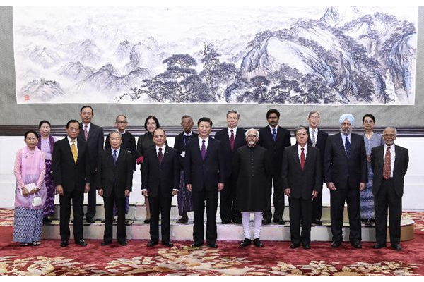| Chinese President Xi Jinping, visiting Myanmar President U Thein Sein and Indian Vice President Mohammad Hamid Ansari participated in the commemoration and delivered speeches. Also present at the commemoration were Chinese Premier Li Keqiang, top legislator Zhang Dejiang and top political advisor Yu Zhengsheng. | ||