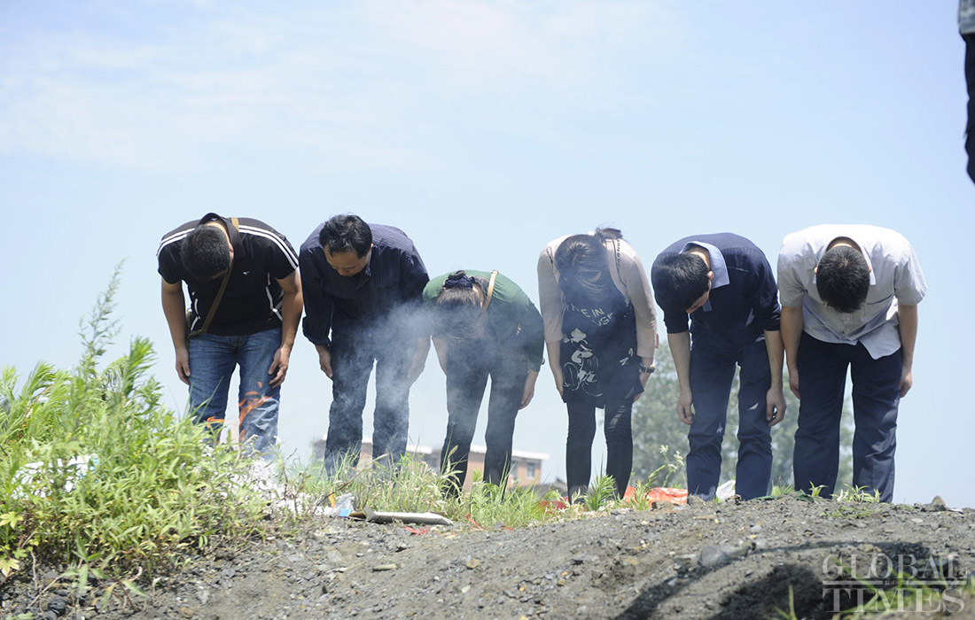 Mourners from Nanjing, Jiangsu Province, gather on the Yangtze River in Jianli, Hubei Province to honor relatives who perished on sunken Eastern Star on June 6, 2015. The death toll has climbed to 331 as of 8:00 am June 6, with 14 rescued and 111 still missing, Xinhua reported. The cruise ship, carrying 456 people, sank in the Yangtze River at 9:28 pm on June 1, 2015. Photo: Li Hao/GT