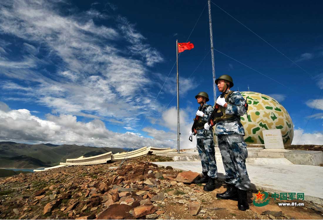 Fellow soldiers guard the Ganbala Station in Tibet, the highest manually operated radar station in the world. figcaption >