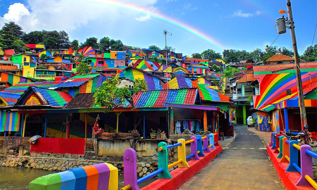 Kampung Pelangi in Indonesia is known for its collection of 232 houses covered in rainbow colors. Photo: VCG