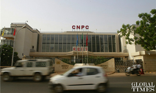 A sign reading “Enjoy the Holiday” is displayed outside a China National Petroleum Corporation headquarters in Sudan. Photo: Li Hao/GT figcaption >