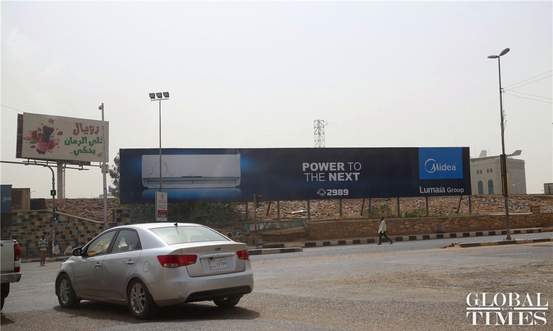 A roadside billboard advertising Chinese electronics brand Midea is displayed in Sudan. Photo: Li Hao/GT figcaption >