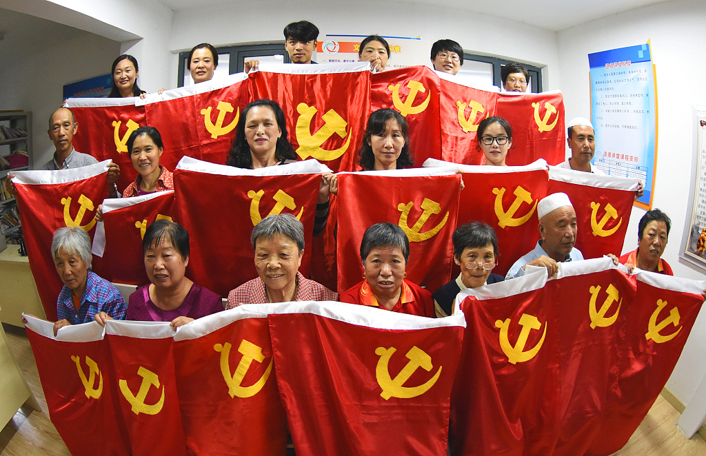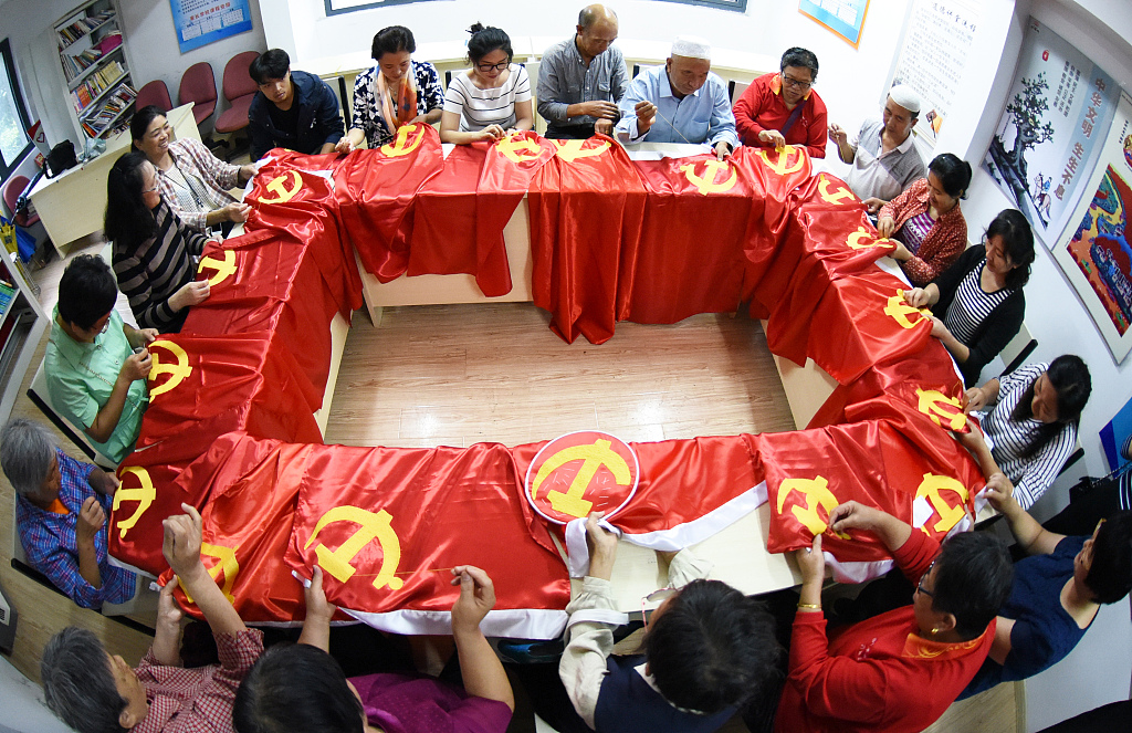 A total of 19 people from all walks of life embroider flags of the Communist Party of China (CPC) in Lianyungang, East China’s Jiangsu Province on September 25, 2017. Photo: VCG figcaption >