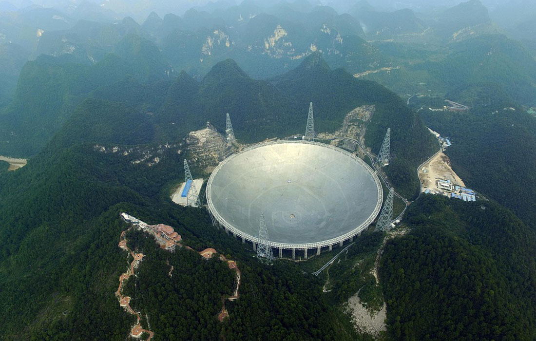 The world's largest radio telescope, the 500-meter Aperture Spherical Telescope (FAST), was put into use in SW China's Guizhou Province on September 25, 2016. Photo: VCG figcaption >