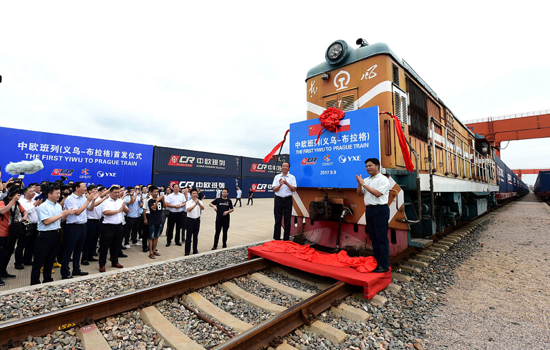 Pictured is a Chinese Railway Express cargo train leaving for Prague, the Czech Republic, from Yiwu, East China's Zhejiang Province on September 9, 2017. Photo: VCG figcaption >