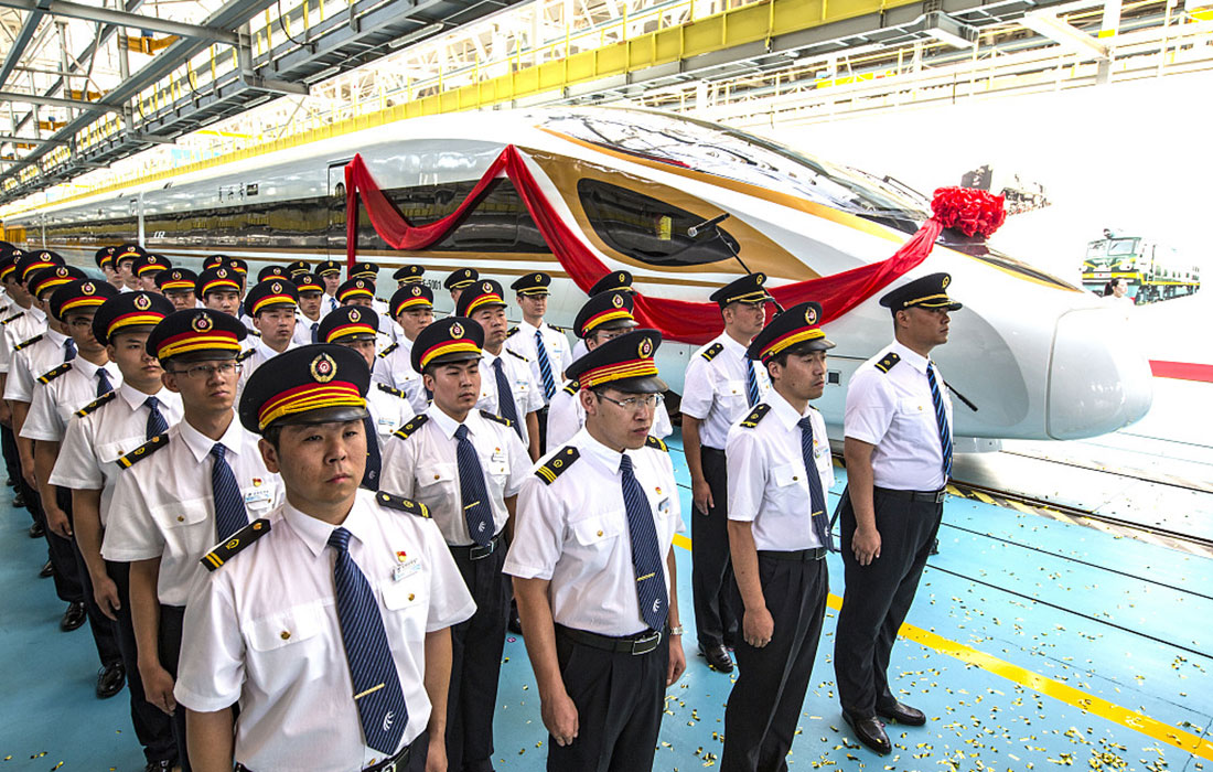 China's new bullet train "Fuxing" debuts on the Beijing-Shanghai line on June 26, 2017. Photo: VCG figcaption >