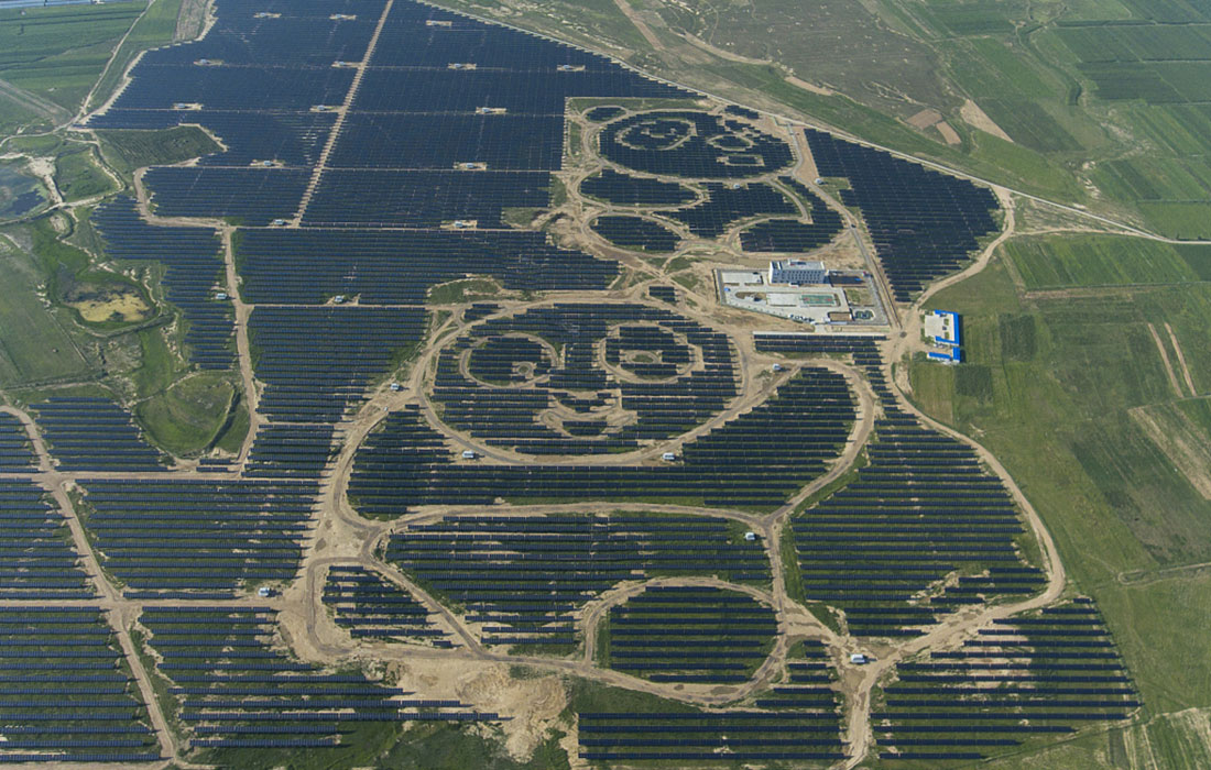 Pictured are solar panel arrays arranged to resemble giant pandas from above at a solar power station that began operation in Datong, North China's Shanxi Province on August 14, 2017. Photo: VCG figcaption >