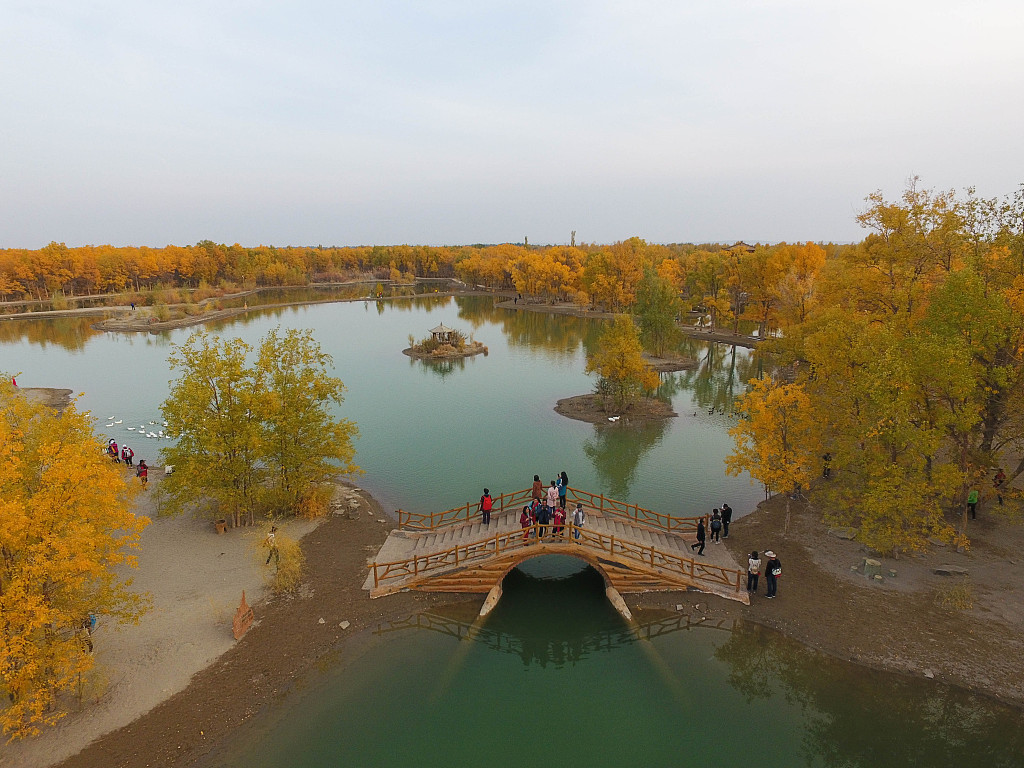 Bright yellows burst from the desert poplars that grow in the deserts of Jiuquan, Northwest China’s Gansu Province on October 16, 2017. Located on the Silk Road, the forests produce some of the most beautiful autumn scenery in Gansu Province. Photos: VCG