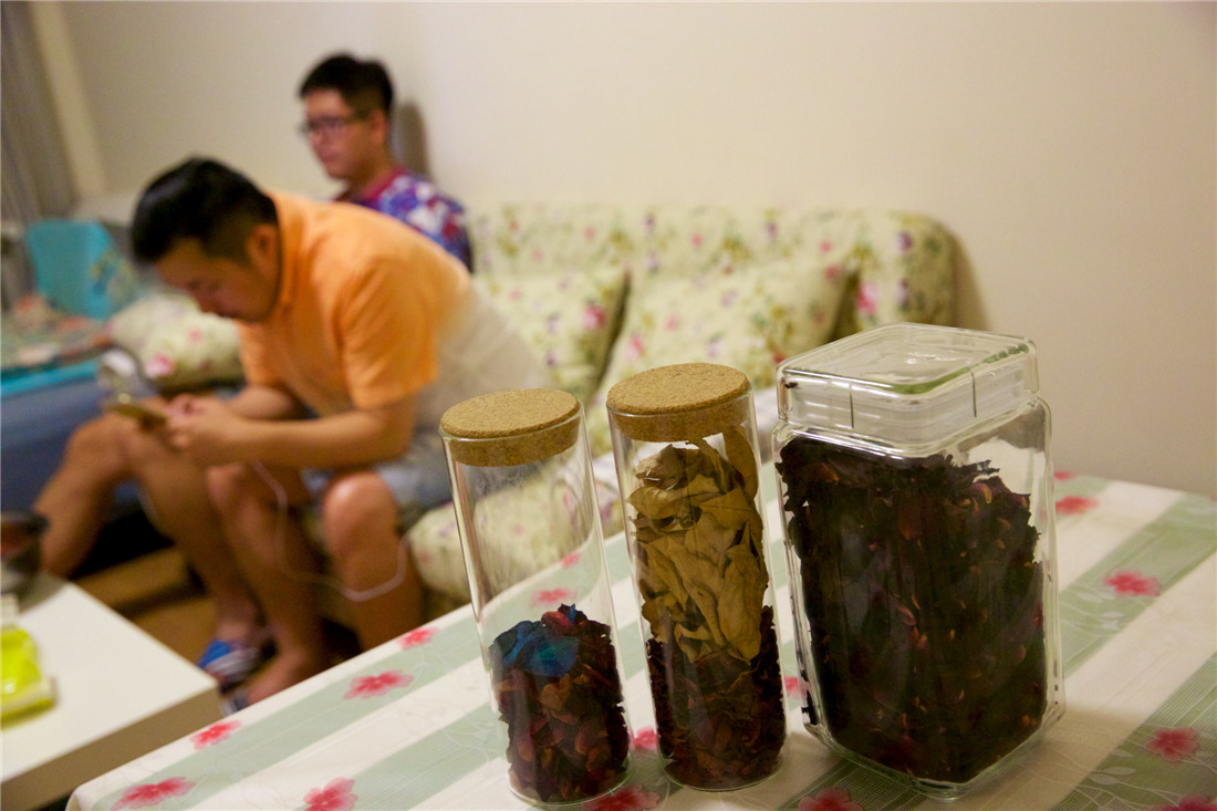 Ling and Gino sit in their living room behind jars of dry rose petals. Gino likes roses while Ling thinks their short bloom life is a symbol of sadness. He doesn’t send Gino roses. Gino explained he once sent Ling a bouquet of Valentine’s Day roses, but Ling later threw them away. Gino picked through the garbage for the roses, then dried and jarred the petals. "This way the flowers can always be in bloom, just in a different way. Just like straight and non-straight people choose love in a different way," said Gino.