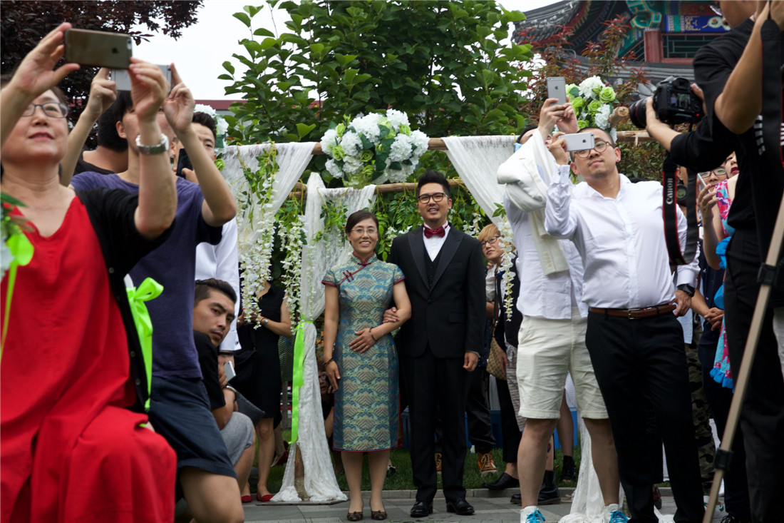 Twenty-seven-year-old Gino and Ling Jueding, 34, hold their wedding ceremony in Beijing on June 27, a day after the US Supreme Court legalized same-sex marriage nationwide. But as gay couples across the world rejoiced the landmark decision, Gino and Ling struggled as both police and prejudice threatened their ceremony.