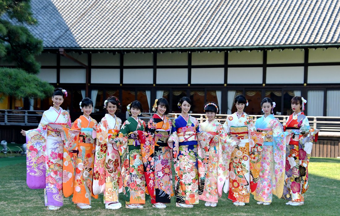 Winners of Japan Beautiful Teenage Girl contest and pop stars from Oscar Promotion Company pose in kimonos for the annual Oscar Promotion photo session, at the Meiji Memorial Hall in Tokyo on Thursday. Photos: VCG